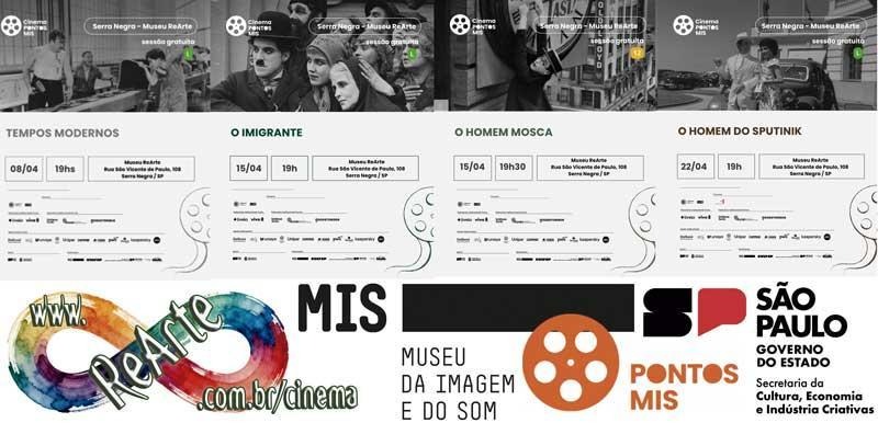 As sessões e a oficina são gratuitas e ocorrerão no Museu ReArte / Ponto MIS Serra Negra, localizado na Rua São Vicente de Paulo, 108 – Serra Negra/SP. – reserve seu ingresso pelo Whatsapp: (11) 98294-6468.